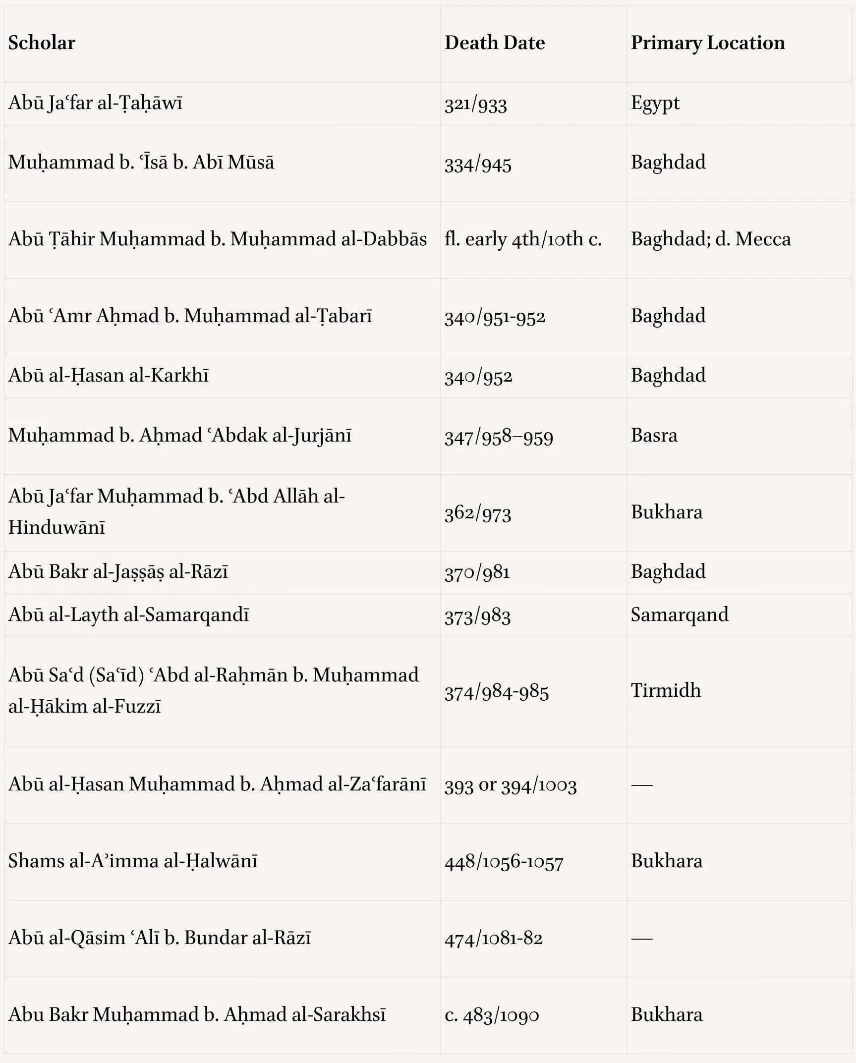 [5] In his historical periodization of the Ḥanafī school, Talal Al-Azem identifies the 3rd/9th century as an era of formative transmission. See Talal Al-Azem, Rule-Formulation and Binding Precedent in the Madhhab-Law Tradition: Ibn Quṭlūbughā’s Commentary on The Compendium of Qudūrī, Islamicate Intellectual History 2 (Leiden: Brill, 2016), 57-59.