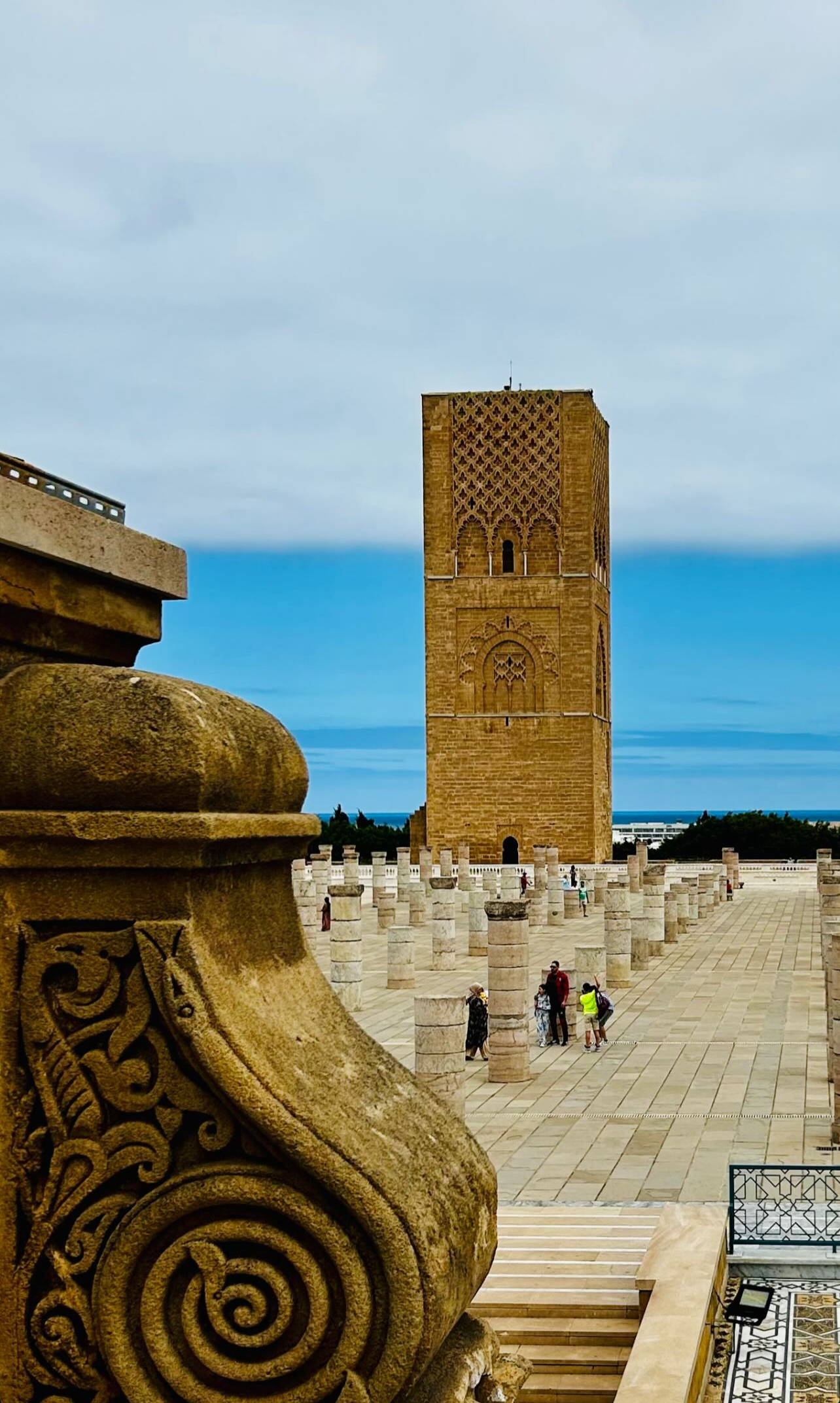 From there we walked to the Hassan Mosque, the grand but unfinished vision of Sultan Yaʿqūb al-Manṣūr (r. 1184–1199). Towering above us stood the Hassan Minaret (صومعة حسان), part of what was once intended to be the largest mosque in the western Islamic world. We prayed ẓuhr among the forest of stone columns under the open sky.