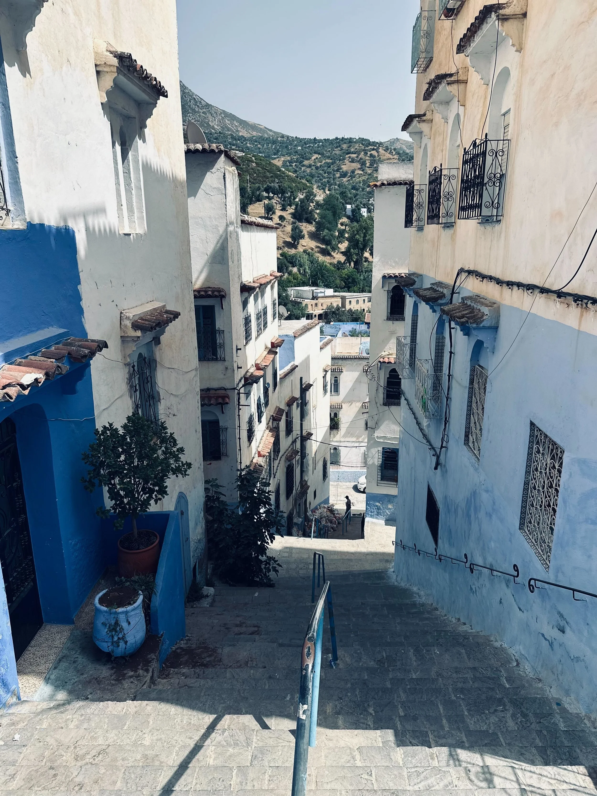 Chefchaouen was the second “blue city” I had heard of. The first was Jodhpur, India. Located in the Indian state of Rajasthan, Jodhpur is often referred to as the “Blue City” due to the distinctive indigo-washed houses clustered around the towering Mehrangarh Fort. The origin of this color is debated. Some trace it back to Brahmin households, who allegedly painted their homes blue to denote their caste and ritual purity. Others suggest more practical explanations: the color deters mosquitoes or helps reflect sunlight, cooling the interior of the homes. What began as a localized practice around the 15th century eventually spread across Jodhpur’s old city, creating the surreal landscape that the city is now known for.